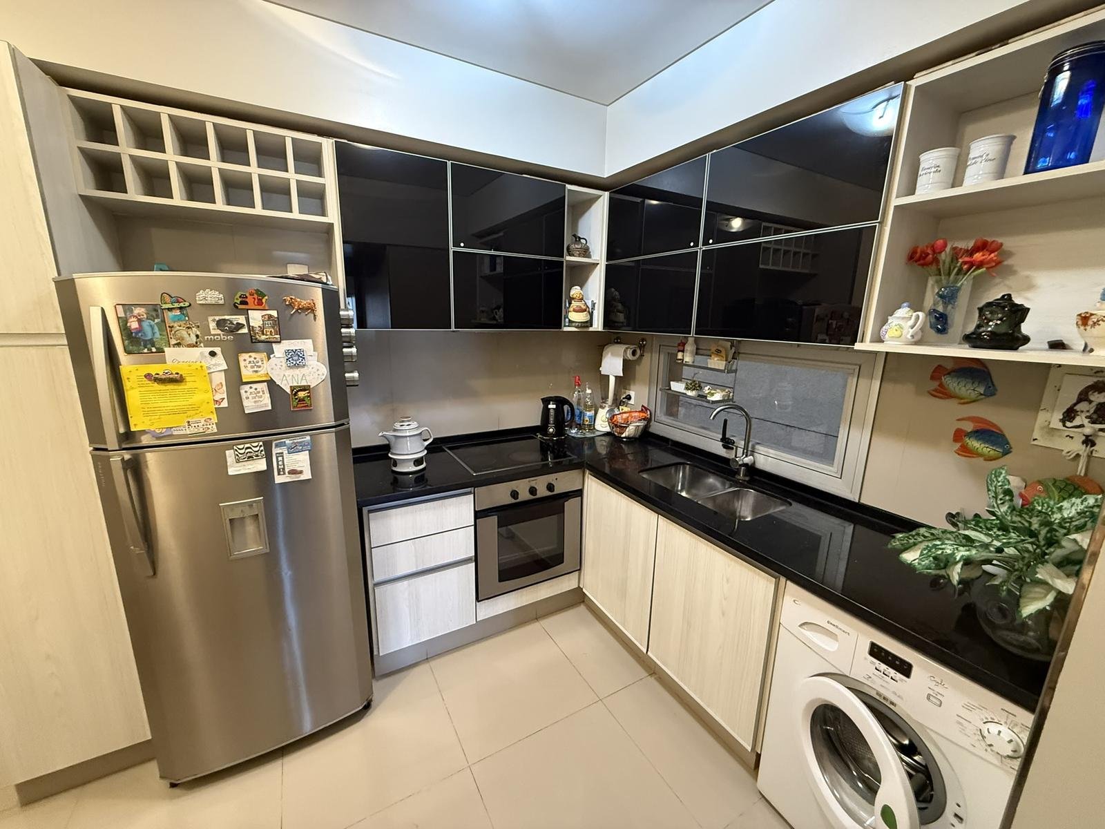 Cocina separada moderna, con muebles de diseño y espacio para comedor diario. Entrada se servicio.